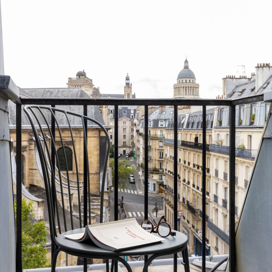 Dans une atmosphère chaleureuse et intimiste, coloris chauds, colombages et pierres de taille dessinent les contours de votre nuit à l’Abbatial. En toile de fond, la vue sur l’Église Saint-Nicolas du Chardonnet, les toits parisiens ou encore Notre-Dame prend une toute autre splendeur lorsque les lampadaires du boulevard Saint-Germain illuminent la Ville Lumière.